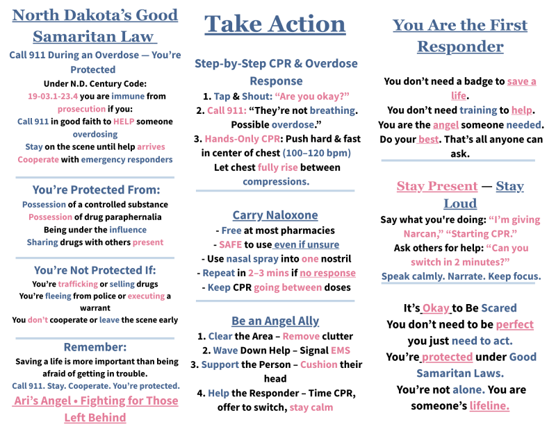 "The community outreach by Ari's Angels in Mandan is so vital. They are always there, offering Narcan and hope to those who need it most."